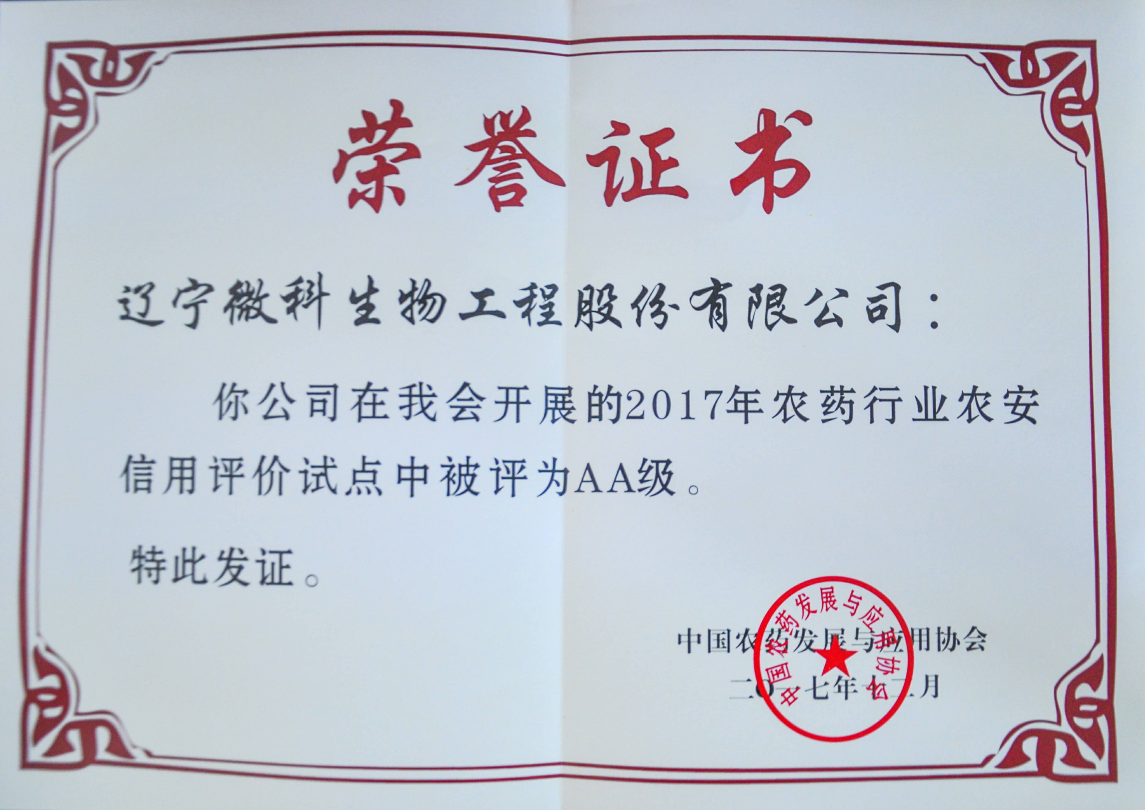 植物健康離不開安全農資產品的保駕護航。2017年12月,致力于“植物健康”的微科生物捷報頻傳,獲得了由中國農藥發展與應用協會組織的...